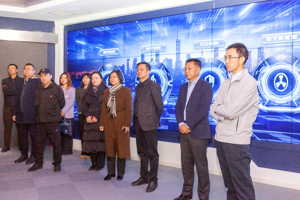 在黄孝斌、黄飞两位校友的陪同下,武森一行参观了时代凌宇智慧体验馆,近距离了解企业在智慧城市、智慧园区与安全应急等领域的创新技术、解决方案及实际应用成果。